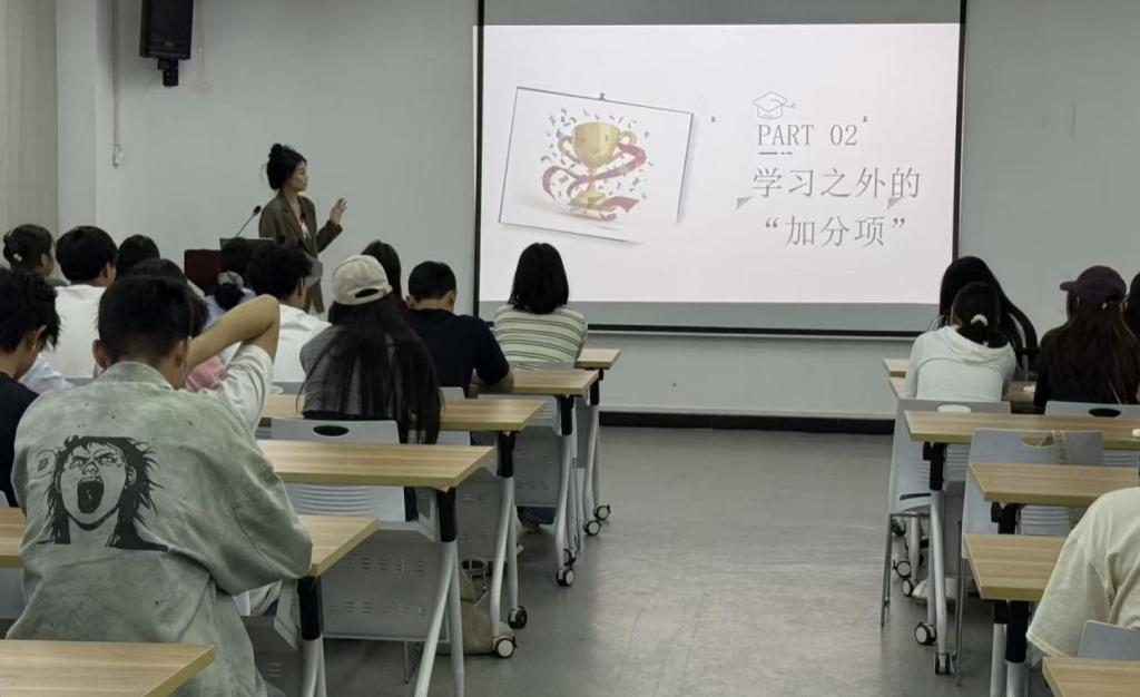 随后,石洋洋围绕“专业认知与发展前景”主题,结合当前制造业数智化转型与电商物流深度融合的新态势,系统分析了供应链运营人才的紧缺现状与广阔发展空间。她指出,数字化与智能化将成为未来供应链管理的主旋律,勉励同学们打牢专业基础、拓宽国际视野,积极迎接挑战与机遇。刘抗聚焦“就业前景与行业趋势”,详细解析了物流与供应链行业的发展趋势、岗位需求及用人标准,引导同学们尽早树立职业意识、合理规划人生方向。在“大学生活规划”板块,高钰君以“学生竞赛与第二课堂”为主题,结合学院近年来在供应链创新设计大赛、物流仿真设计大赛等赛事中取得的成果,分享了学生参与专业竞赛及创新创业活动的实践路径,鼓励新生积极参与、全面发展。