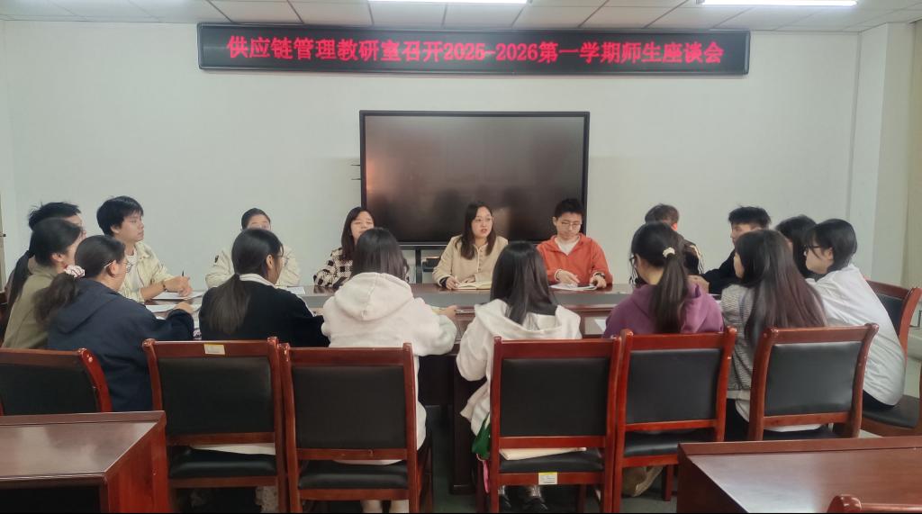 为精准把握学生学习诉求,赋能课堂教学提质增效,11月5日下午,供应链管理教研室在双创中心215会议室召开了2025-2026学年第一学期师生座谈会。教研室主任田乐、副主任吴越、专职教师葛好羽、任环宇及供应链管理专业和供应链运营专业学生代表参会,座谈会由田乐主持。