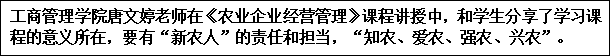学院党总支书记蔡志在《财务管理》的课堂上与学生互动,请同学们时刻牢记“请党放心,强国有我”的誓言,记住我们党的前辈,记住他们的志气、骨气、底气,用勤学点亮“思想之光”,用传承点亮“精神之光”,用努力点亮“奋斗之光”,努力成为优秀的人、卓越的人、出彩的人,成为让党放心的“强国一代”。