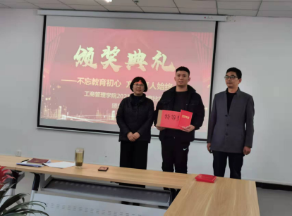 11月23日,工商管理学院党总支书记蔡志、院长潘一平为获奖选手颁发了证书及奖品。潘一平院长希望教师们能以此次活动为契机,不断精进自身的专业能力,提高业务水平,切实提升综合教学素质,为beat365在线平台官网教育教学质量的全面提升贡献力量。