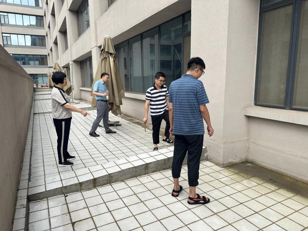 蔡志、潘一平等人逐一检查了学院一楼实训室、二楼办公室、教室,对二楼东、西、南、北四个平台垃圾和泥沙进行清理,防止排水管道阻塞,确保畅通。及时搬移实验室电脑等教学仪器设备,针对部分设备较大无法挪动的情况,联系后勤管理处在前后门放置沙袋,防止雨水进入。