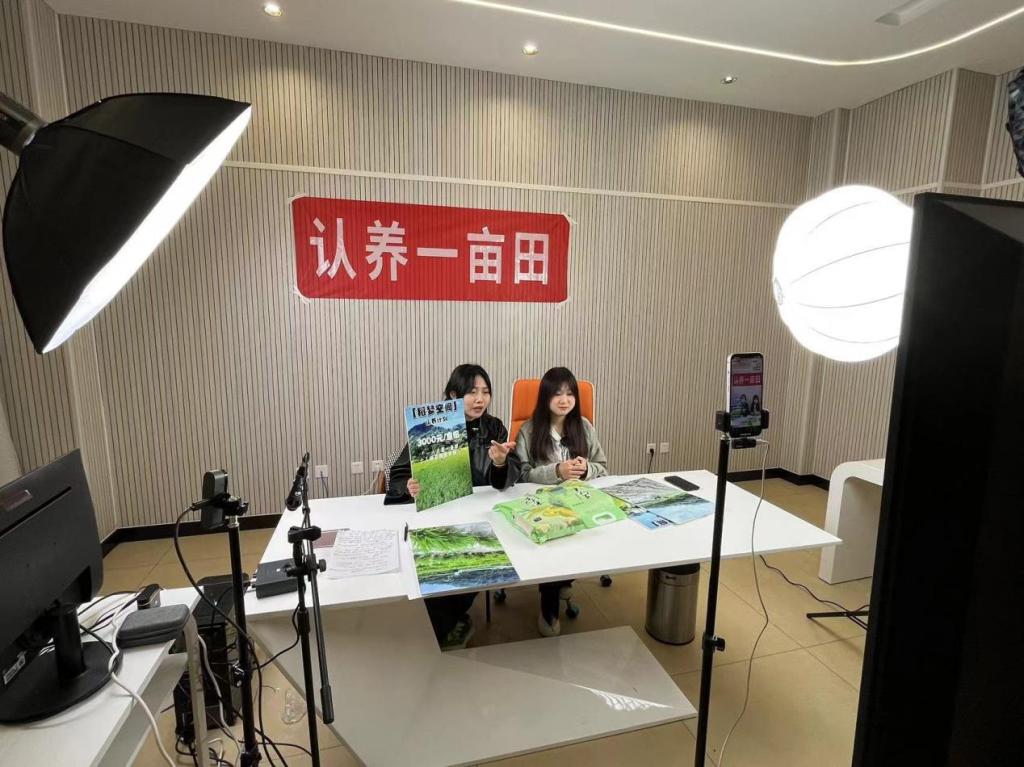 信阳电商小镇是信阳市政府倾力打造的一个集电商运营、创新创业、青年创业、电商服务等多功能于一体的创新平台。在电商小镇的直播间内,社团成员通过直播展示和推广了“稻梦空间”认养计划助农项目,包括项目背景、项目环境、产品优势、认养计划等内容,让直播间观众更加深入地了解“稻梦空间”认养计划助农项目的价值与特色。