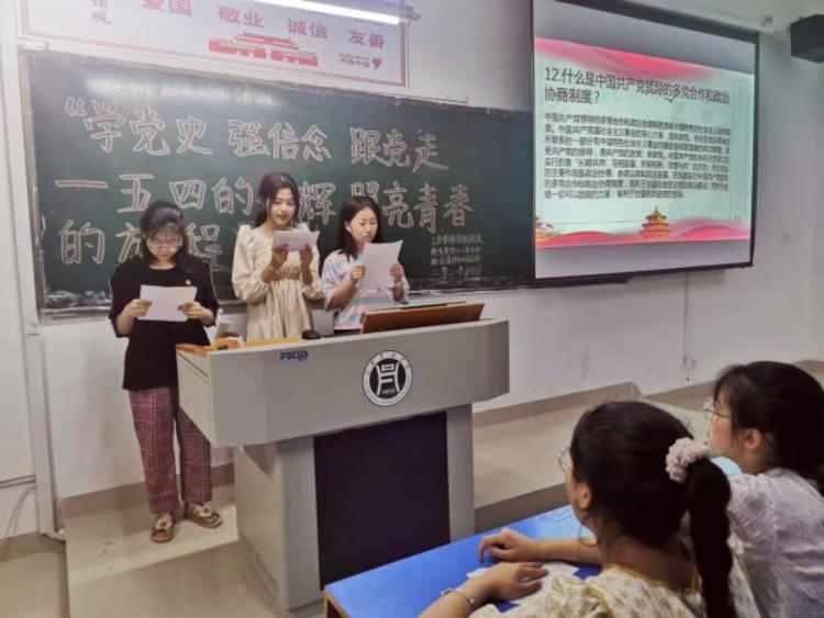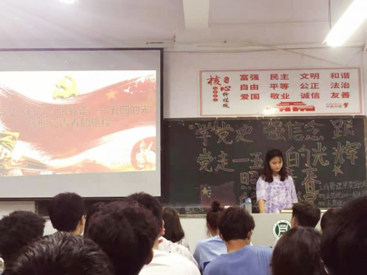 为庆祝中国共产党建党一百周年,纪念五四运动,工商管理学院于2021年5月10日在一教开展“学党史 强信念 跟党走—五四的光辉照亮青春的旅程”主题团日活动。