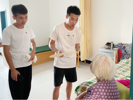 队员们为老人们准备了牛奶、面包等物品以表心意,在按时到达敬老院后受到院内负责人和老人们的热烈欢迎。队员们去看望了老人并与老人们亲切交谈,询问了敬老院的居住环境、了解了老人们丰富的生活阅历等,并认真倾听了老人们讲述着改革开放前后的个人经历,不禁让队员们深感今天的幸福生活来之不易。最后,队员们积极帮助老人整理床铺,打扫卫生,贡献出了自己力所能及的力量。