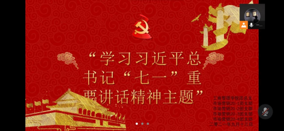 为深入学习贯彻习近平总书记在庆祝中国共产党成立100周年大会上的重要讲话精神,切实引导青年学子增强政治意识、大局意识、核心意识、看齐意识,深刻领会和把握习近平总书记“七一”重要讲话的重大意义、丰富内涵、核心要义、实践要求,工商管理学院于2021年9月13日组织各班线上召开学习习近平总书记“七一”重要讲话精神主题团日活动。