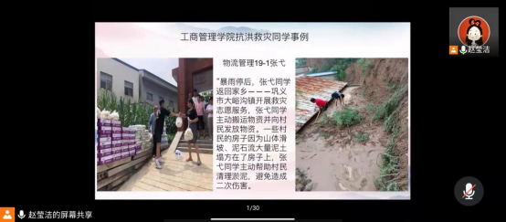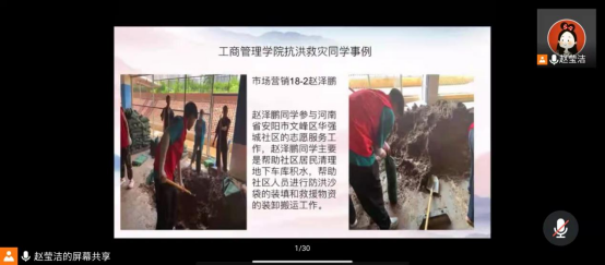 为培养同学们在灾难面前的责任意识和奉献意识,做到把灾难当教材,与祖国共成长,工商管理学院于2021年9月14日在线上组织开展“把灾难当教材 与祖国共成长”主题团日活动,活动由赵莹洁老师组织召开。