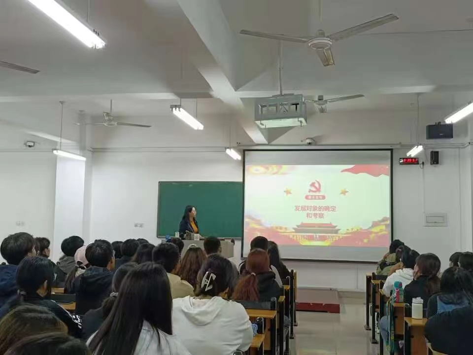 会上,贾若雨讲解了从递交入党申请到成为一名正式党员的整个党员发展流程,并对学院每学期关于发展党员的推选工作步骤做了详细介绍,同时对同学们关心的问题进行了一一解答。