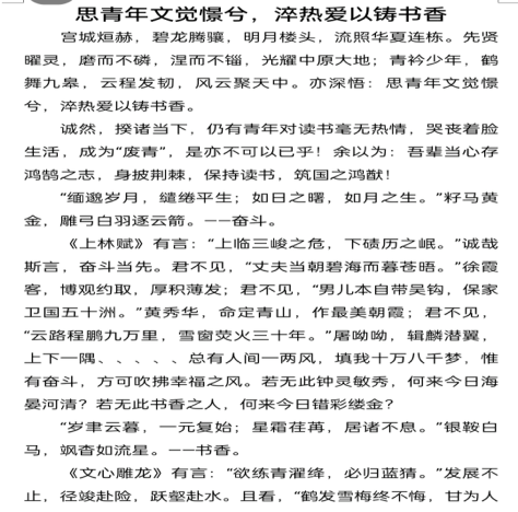 本次活动采用电子版征文的形式展现,我院学子积极响应,踊跃参加,共收获315篇征文。大家从不同的角度进行构思,以此来展现阅读的重要性。同学们上交的作品内容丰富,语言优美,构思巧妙,无处不透露着对阅读的热爱,其中有提到了阅读《文化苦旅》后得出的感悟,也有在认真剖析古诗词后与诗人产生的共鸣,也有通过构思和打磨语言后自己创作出的文言文,各式各样的文章都体现了我院学子对阅读的重视和热爱。经过激烈的角逐,最终评选出一等奖一名,二等奖两名,三等奖三名。