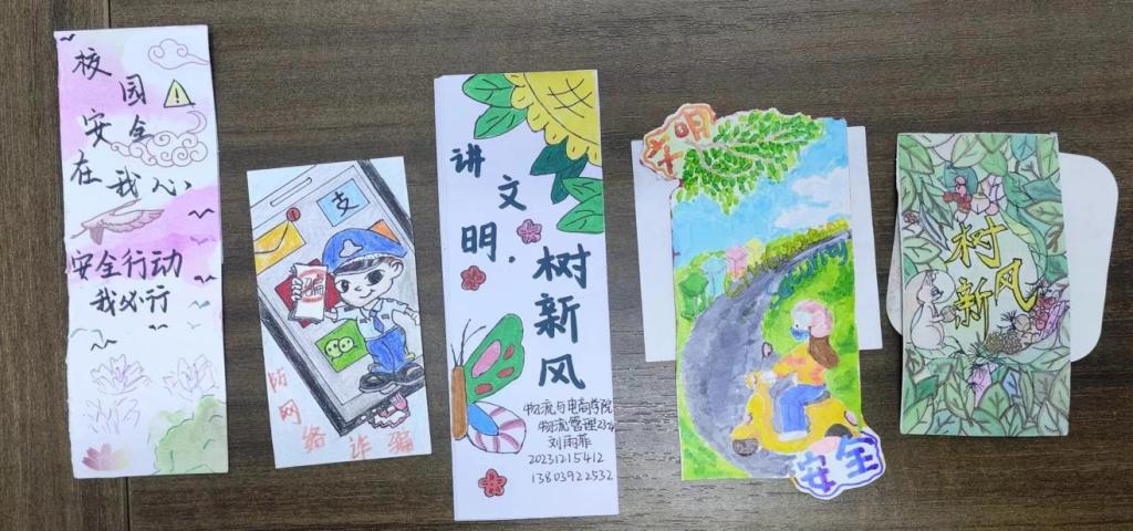 为增强同学们安全意识,宣传文明行为,培养创意能力,加强校园文化建设,物流与电商学院于2024年3月15日—22日举办手绘书签活动。