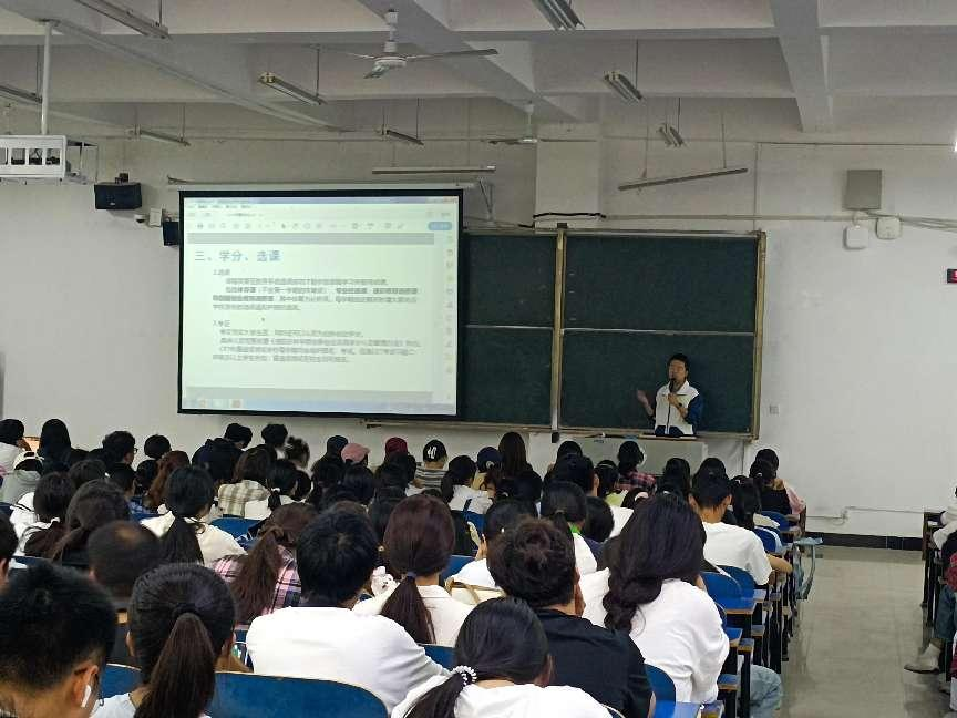 在培训中,马宇轩从新生注册、转专业、学籍信息更改、应征入伍学籍、休学与复学、考试补修及重修、学分制度等几个方面向同学们做了详细介绍,并向同学们演示了教务管理系统的使用方法和注意事项。最后,马宇轩针对学生提出的学分、学业预警等问题进行了解答,并引导学生从现在起做好四年的学习规划,养成良好的学习习惯。