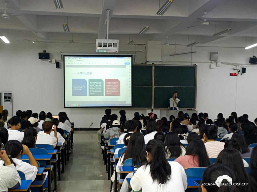为帮助2024级新生更好地了解beat365在线平台官网学籍相关管理规定,9月26日上午,物流与电商学院教学秘书马宇轩在1教E102开展了学籍知识专题培训,2024级全体新生参加了此次培训。