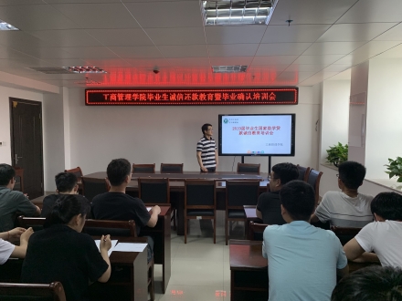 为增强毕业生的诚信还款意识,告知毕业生贷款违约责任,我院于6月2日对全体生源地贷款和高校助学贷款毕业生召开了诚信还款教育会,由资助专员范嘉义主讲,院勤工部参加。