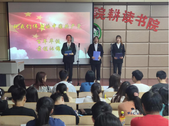 为隆重纪念党的100周年华诞,鼓励同学努力奋斗,争创优良学风,担当时代使命。工商管理学院于2021年6月22日在二教204开展“奋发有为心向党 青春逐梦耀初心”朗诵比赛决赛。