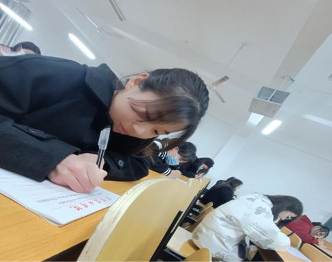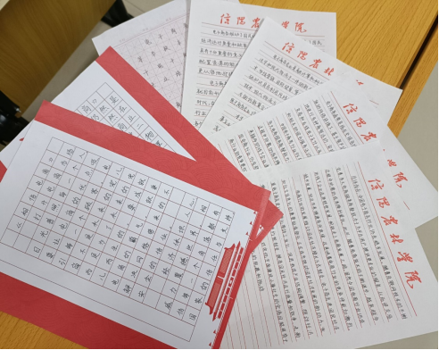 比赛要求参赛选手现场45分钟内完成作品,内容聚焦专业相关知识。参赛人员个个满怀激情,他们双姿规范,注重汉字书写时的起笔、运笔以及收笔的过程,汉字书写正确、规范、美观、大方。比赛尾声共收到32份作品,由学风建设部成员匿名进行打分,最终评选出一二三等奖共六名。