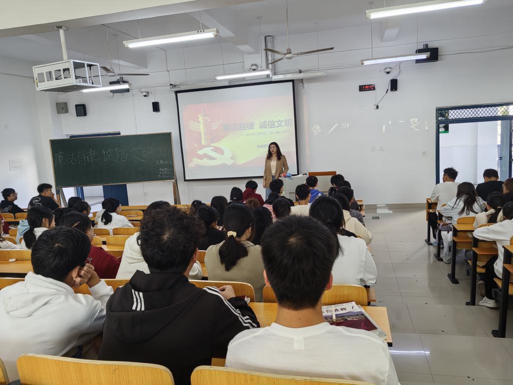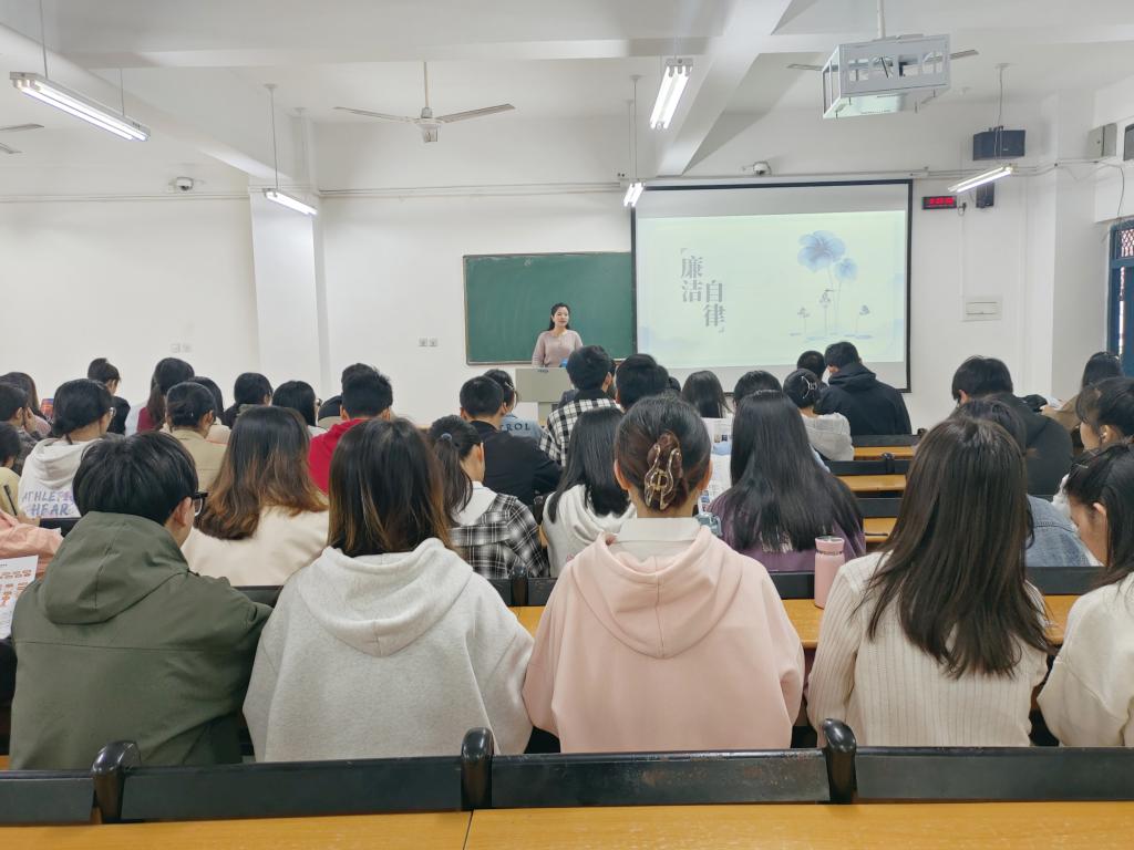 为进一步推进清廉班级建设,加强学生思想政治教育,引导学生树立清廉法治理念,培养廉洁自律的品格,认识到青年崇廉尚洁、严于律己,国家才能正气充盈、永葆青春。物流与电商学院于2023年10月23日-11月3日开展廉洁自律主题班会,班会由各班辅导员老师主持开展,班会形式多样,以“清风读书会”“宣讲会”“演讲比赛”为主。