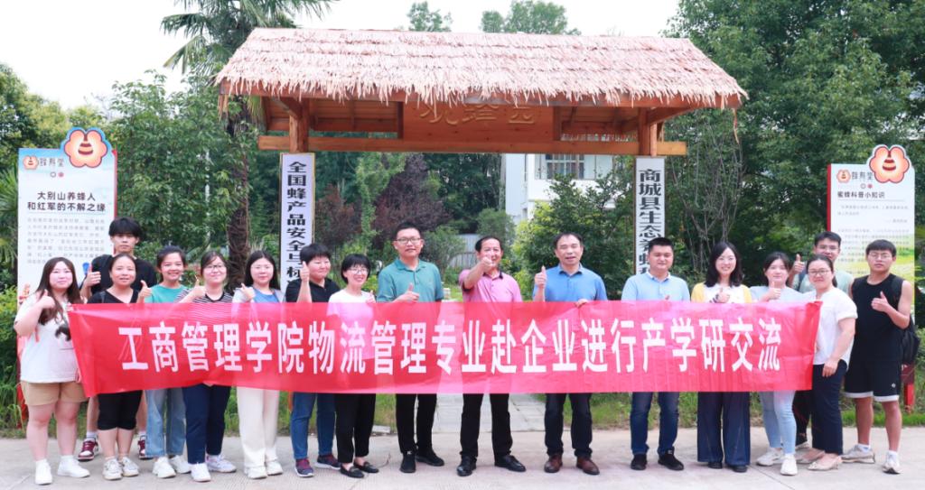 2023年7月25日,工商管理学院“数字乡村战略下农产品流通体系创新”科技服务团队成员张世军、方海云、梅宝林、张尽染、葛好羽以及物流管理专业部分老师和学生在河南大别山詹氏蜜蜂园有限公司开展科技服务。一行十二人在企业参观了蜂蜜的自动灌装和包装车间,并与企业董事长詹先福进行交流。大家就产品的包装,流通加工和运输等环节进行交流探讨。张世军、方海云等也就未来农产品品牌的建设提出自己的看法和建议,并和企业一起探讨未来的发展布局。