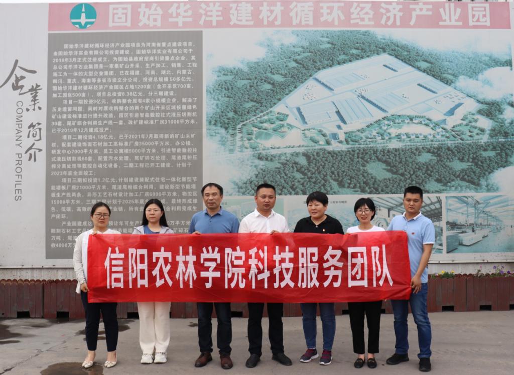 2023年8月26日,工商管理学院“数字乡村战略下农产品流通体系创新”科技服务团队成员张世军、方海云、梅宝林、张尽染、葛好羽以及物流管理专业部分老师和学生固始华洋建材循环经济产业园开展科技服务。固始华洋建材循环经济产业园区坚持建立生态产业园区,是河南省重点项目。张世军,方海云,梅宝林等一行参观了企业的尾矿综合利用生产线,尾渣加工加气砖生产线,污水处理、尾渣压榨分离处理等加工设备,并就绿色发展问题和企业进行探讨。