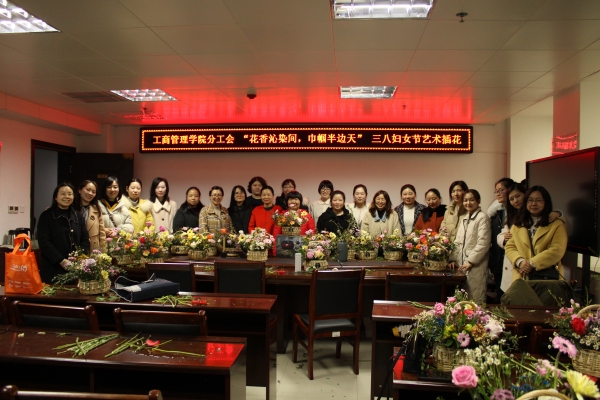 2021年3月5号,为了迎接三八妇女节的到来,工商管理学院分工会在行政楼717开展了以“花香沁染间,巾帼半边天”为主题的三八妇女节艺术插花活动,邀请花艺师现场授课,旨在培养女性知美、爱美、尚美、会美的美好生活情趣,让学院女教师度过一个有意义的节日。