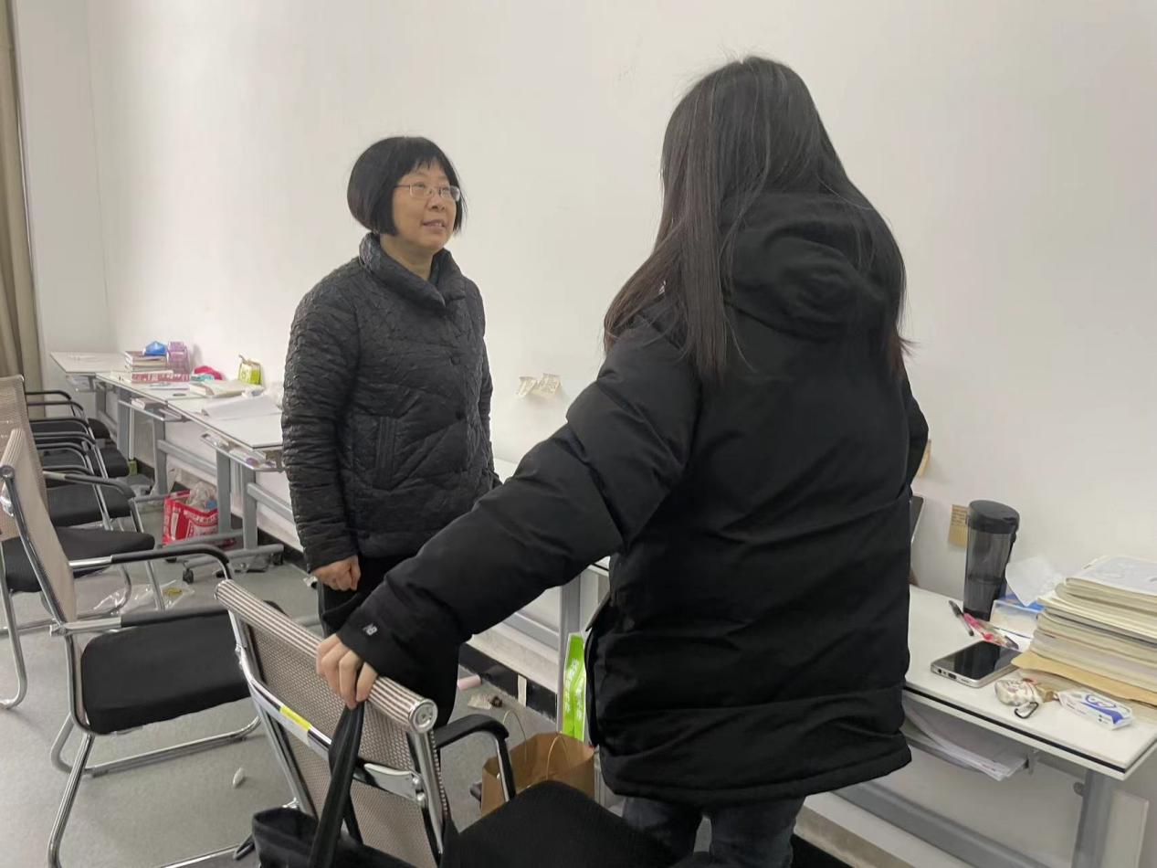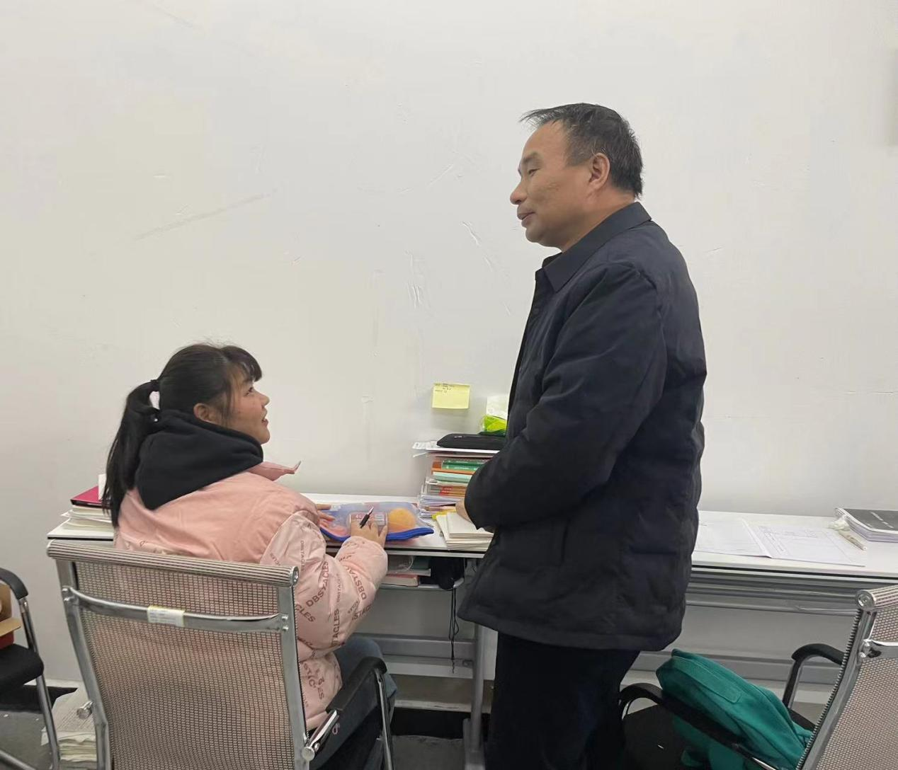 严寒撞上⼗⼆月,又是⼀年考研月。为了给考研学子增添考研动力,坚定考研信心,12月8日,工商管理学院党总支书记蔡志、院长潘一平、副院长张世军、副书记王宇平及毕业班辅导员,在考研教室看望了备战2023年研招考试的学生。