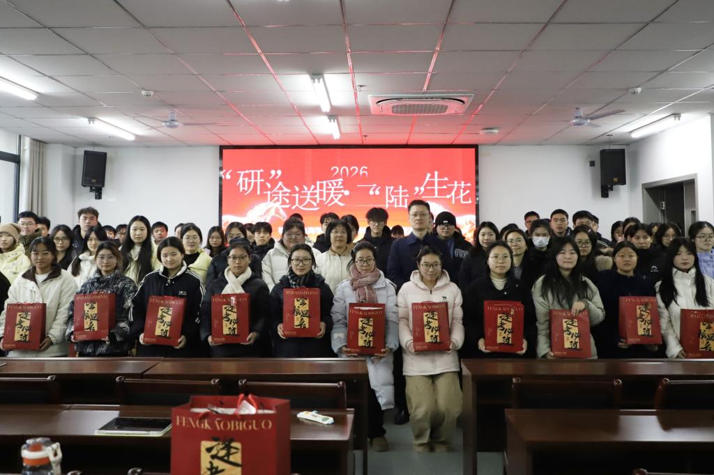 活动最后,与会师生合影留念,定格温暖瞬间。本次送温暖活动既为考研学子注入了强劲动力,也进一步增强了学院的向心力与凝聚力。相信在学院的全力支持与学子们的不懈拼搏下,2026届考研学子定能乘风破浪,“研”途绽放,实现梦想!(撰稿 摄影/张春焕)