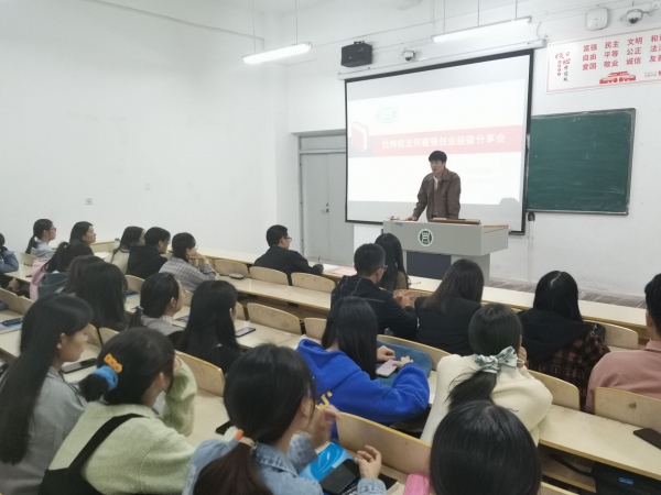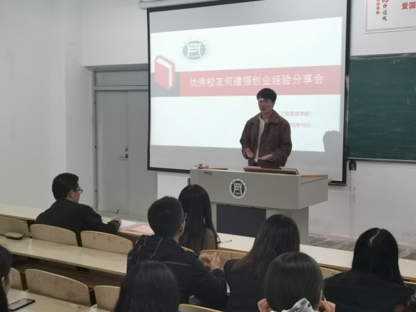 2020年10月16日,2012级市场营销专业优秀校友何建强,为工商管理学院师生作了一场创业经验分享会,学院团总支书记霍玉璨、辅导员管甜甜、卞梦涵和范嘉义,以及100余名学生参加了报告会。