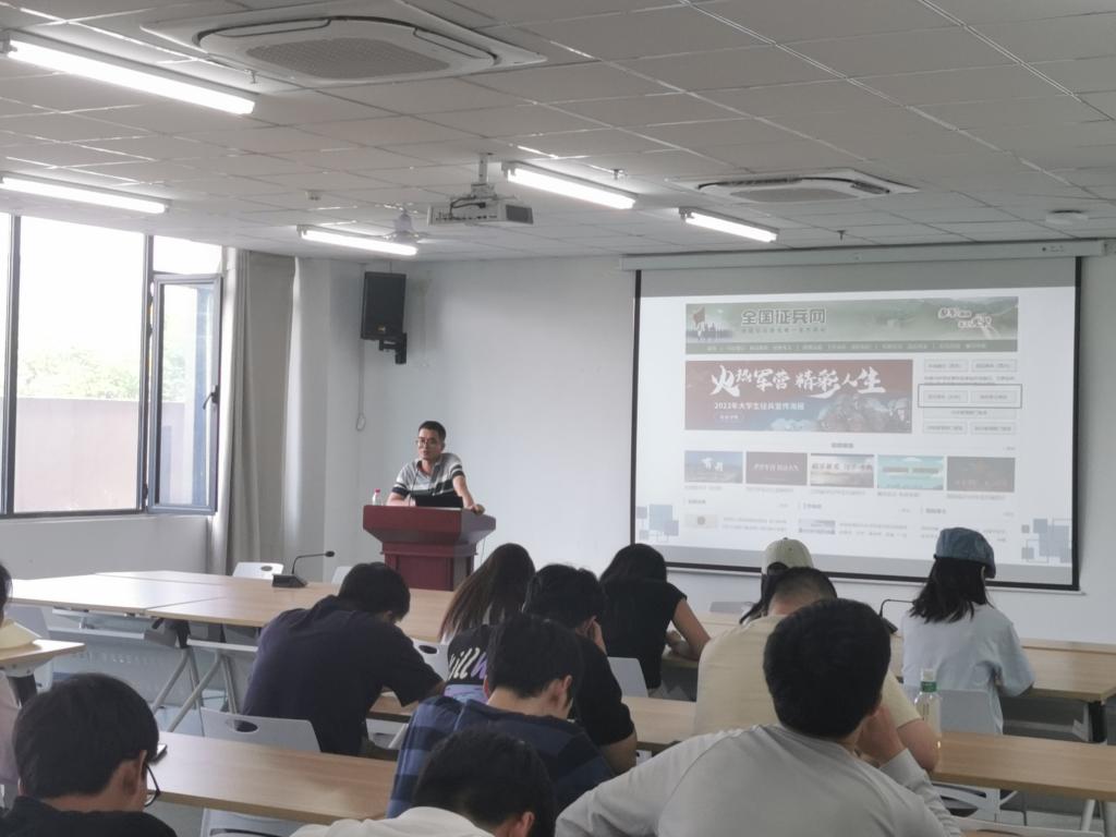 热血青年壮志凌云,有为青年立志从军。为做好2024年大学毕业生应征入伍工作,营造参军入伍氛围,6月6日,物流与电商学院在双创中心208召开了2024届毕业生征兵动员会,由武装专员范嘉义主讲,2024届毕业生参加。
