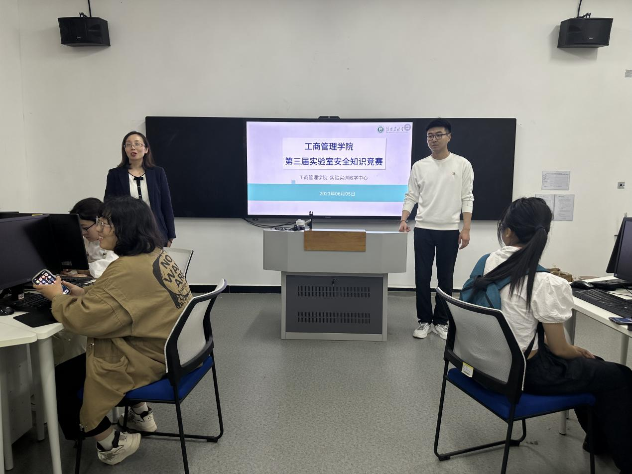 为进一步加强校园实验室安全工作,强化实验室安全规范,提高应对突发事件的能力,营造浓厚的实验室安全氛围,在全国第22个安全生产月来临之际,6月5日下午,工商管理学院第三届实验室安全知识竞赛在双创中心北楼106进行,来自我院物流管理、电子商务、市场营销专业共34名选手参加比赛。本次比赛以常见的实验室操作安全和规范指南进行自主命题,以集中线上扫码答题的形式开展。赛前,工作人员提前布置考场,宣读了考试纪律及考试规则,提醒各位参赛者遵守考场纪律,认真完成考试。各参赛人员进行了充足的准备,每一位选手都全力以赴,认真答题。最终,选出一等奖2人,二等奖3人,三等奖5人。前三名将代表学院参加学校实验室安全知识竞赛决赛。