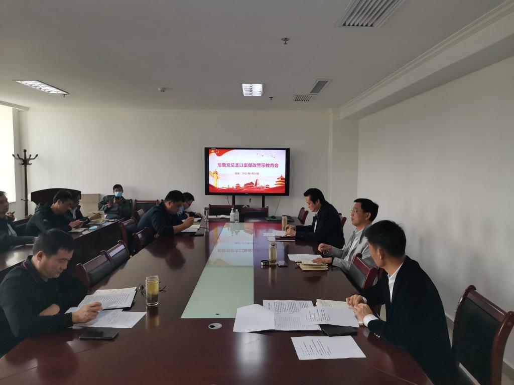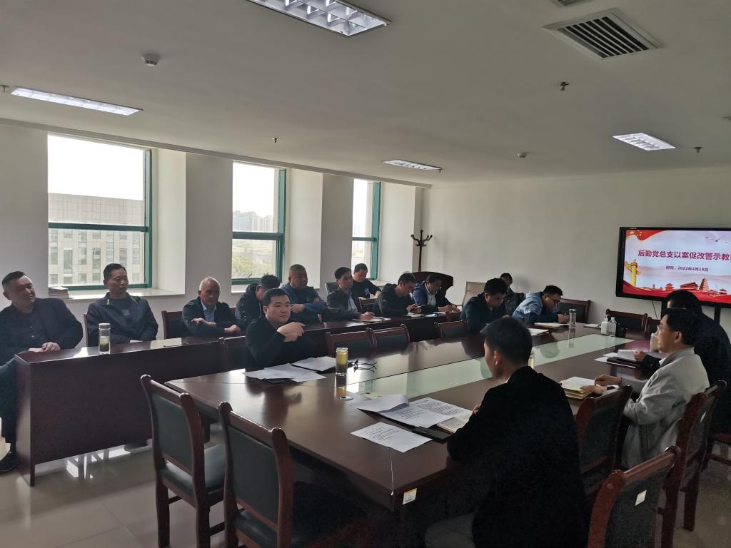 2022年4月18日下午,后勤党总支在办公楼807召开了以案促改警示教育大会。后勤党总支班子成员、副科级以上干部、后勤各部门副经理以上人员共18人参加了此次会议,会议由后勤党总支纪检委员张仁勇同志主持。