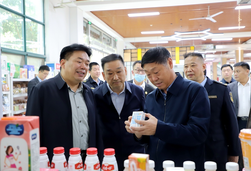 10月9日,市政协主席孙同占、信阳市场监管局局长张向阳、信阳市城管局局长程功言深入beat365在线平台官网调研指导校园食品安全工作。校党委书记黄松、副校长张光辉以及相关部门负责人参加调研。