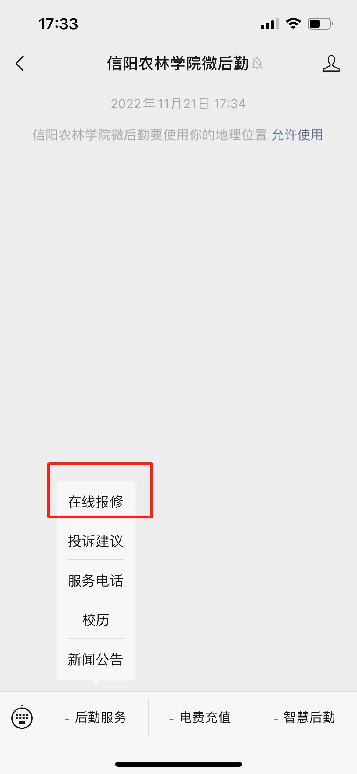 为进一步提升后勤服务质量和效率,健全后勤服务评价体系,方便全校师生对学校设备设施故障进行报修,后勤管理处(后勤服务总公司)积极推进后勤信息化建设,即日起正式上线后勤统一在线报修平台,目前报修平台支持零星维修、水电维修、物业疏通三种常用报修类别,后续会根据师生需求增加其它报修种类,全校师生可通过微信、完美校园APP登陆报修平台进行在线报修,系统将根据维修种类自动分配维修师傅,可在系统实时查看维修进度,并对维修服务进行评价。零星维修类在线报修后,若经测算维修价格超过1000元,仍需填报《零星维修申报表》按程序审批后进行维修。统一在线报修平台使用方式如下: