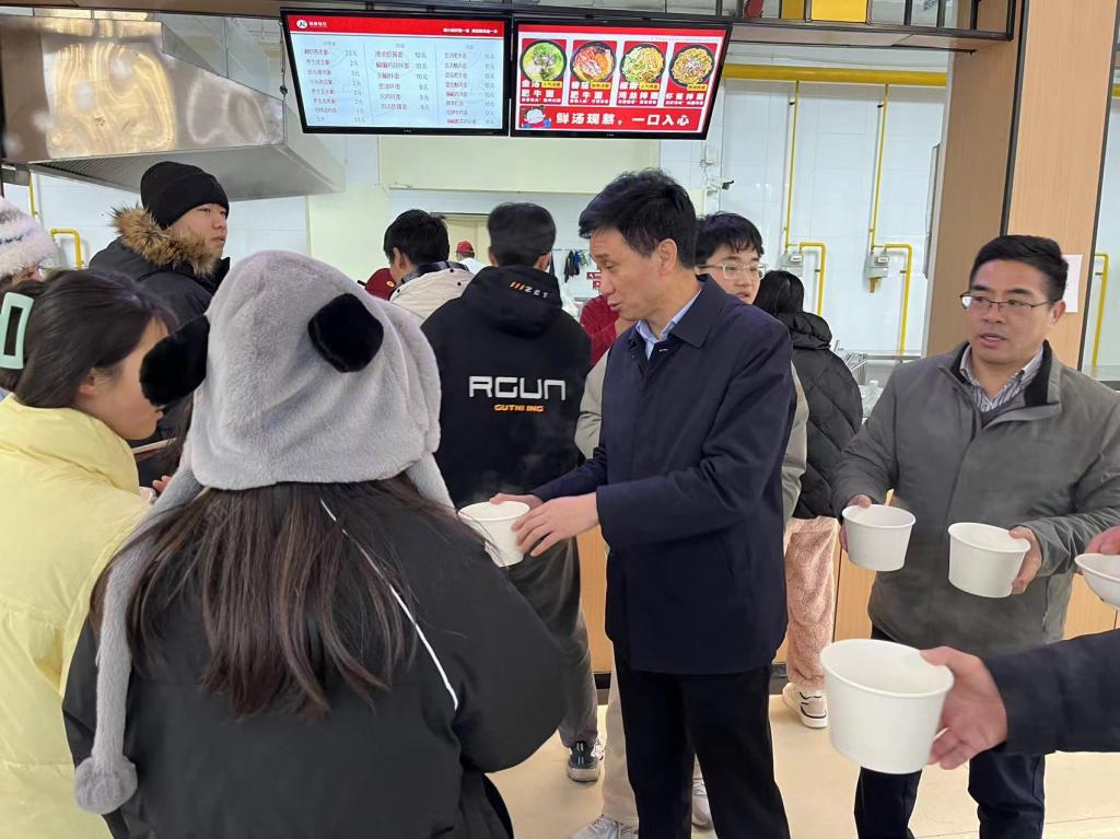 中午11点,免费送汤圆活动开始。副校长刘开华、党办主任雷振山、后勤管理处处长胡显淼到食堂为同学发放汤圆,询问返校后生活学习情况,并祝同学们节日快乐。同时,食堂的师傅们还准备了可口的饭菜,同学们围在餐桌前,津津有味的品尝着汤圆和菜肴。每逢佳节倍思亲,虽然远离家乡的学子们不能和父母家人一起过节,但是这次活动让同学们感受到了家一般的温暖。