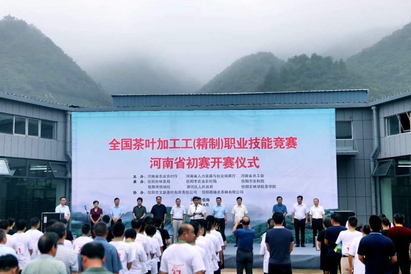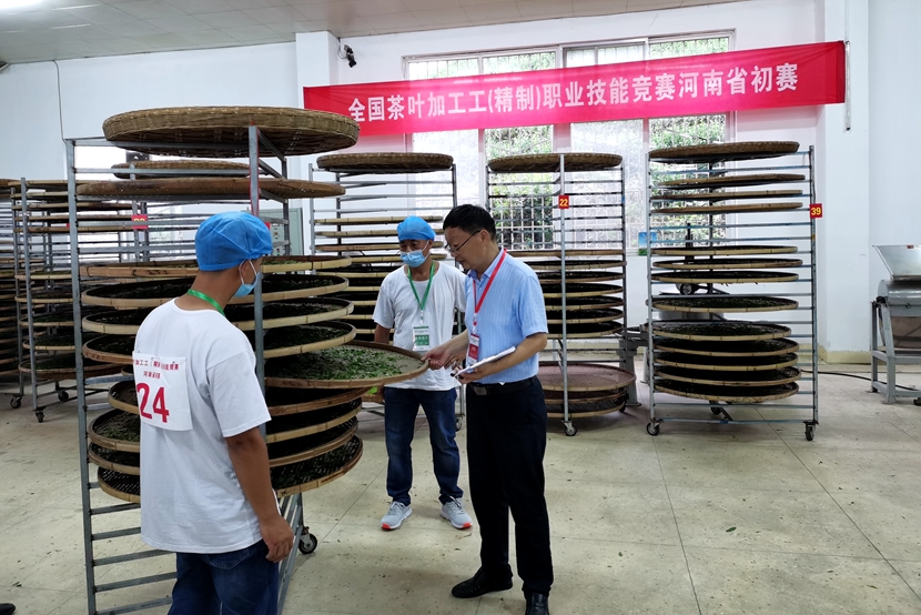 8月19日-21日,由河南省农业农村厅、省人力资源和社会保障厅、省总工会主办,信阳市林业和茶产业局、信阳市农业农村局、信阳市供销合作社、信阳市农科院、beat365在线平台官网茶学院、浉河区人民政府共同承办的第三届全国农业职业技能大赛全国茶叶加工工(精制)职业技能竞赛河南省初赛在浉河区浉河港镇文新茶叶加工园举行。来自全省9个市、县的40名优秀红茶生产加工能手齐聚比赛现场进行竞技。beat365在线平台官网茶学院院长、国家级(评茶员)技能大师工作室领办人郭桂义教授应邀参加选拔赛开幕式并担任大赛评委,技能大师工作室成员、茶学院专业教师杨转老师和王杉老师具体负责大赛的样品收集登记、感官审评、结果统计等工作,所有茶叶感官审评用具及相关统计材料由茶学院提供。