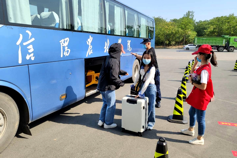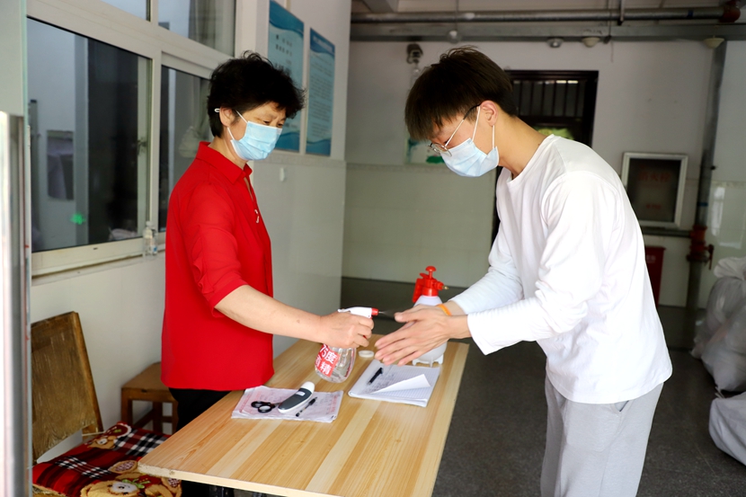 为迎接第一批学生安全返校,学校安排专门车辆和志愿者到火车(高铁)站、汽车站做好接站服务,“点对点”接送返校学生直达学校;学生在学校南大门完成返校身份核实、体温检测、扫码登记、行李消杀等入校程序;相关学院在南大门设置引导服务台,为学生们准备了口罩、消毒喷雾、体温计等爱心大礼包;随后辅导员老师带领学生进入宿舍。整个流程有师生志愿者协助,各环节分工明确,顺畅有序。
