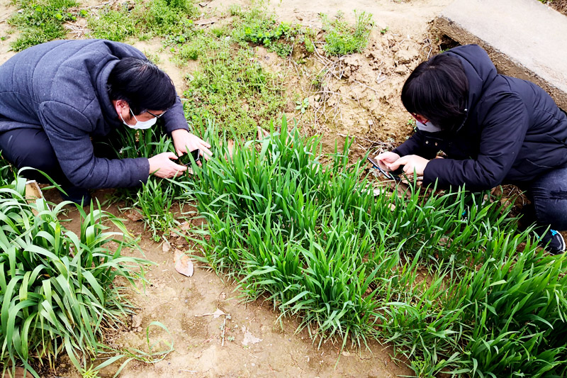 3月5日,农学院科技特派员服务团团长、院长、省级科技特派员尹健教授带领由农学、植保、土肥等相关专业教师组成的服务团,在疫情防控政策允许范围内,深入到信阳市周边田间生产一线,认真细致地查看当前在田作物小麦的田间长势、土壤墒情、病虫草害发生情况以及营养状况等,获得了大量的一手资料。据此制定了《疫情期间小麦田间管理注意事项》和《疫情期间小麦病虫害防治办法》,并通过线上平台向相关合作社、种粮大户进行了转发。服务团成员肖荣英副教授创新服务方式,在油菜田录制了《当前油菜管理要点》视频,转发给信阳地区油菜种植大户,以实物的形式详细讲解了当前油菜肥水和病害管理要点,取得了很好的服务效果。