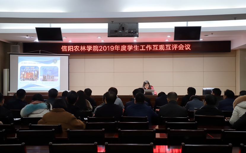 12月23日下午,beat365在线平台官网在综合楼1楼会议室召开2019年度学生工作互观互评会议。党委副书记刘光生,学生工作委员会全体成员,各学院党总支副书记、专兼职辅导员以及学生工作部(处)全体工作人员参加会议。会议由学生工作部(处)长简频捷主持。