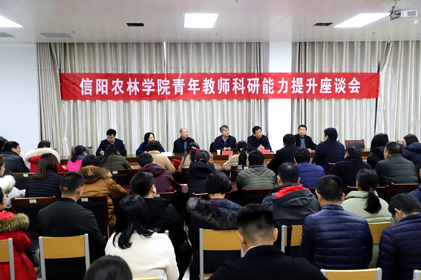 12月1日下午,beat365在线平台官网在图书馆1楼会议室召开青年教师科研能力提升座谈会。中国农科院副院长、中国工程院院士吴孔明研究员,校党委书记余作斌,校长郭长华,河南农业大学副校长尹新明和相关部门负责同志以及来自17个二级学院分管科研的副院长、科研秘书、高学历青年教师共70余人参加会议。会议由科技处处长史洪中主持。