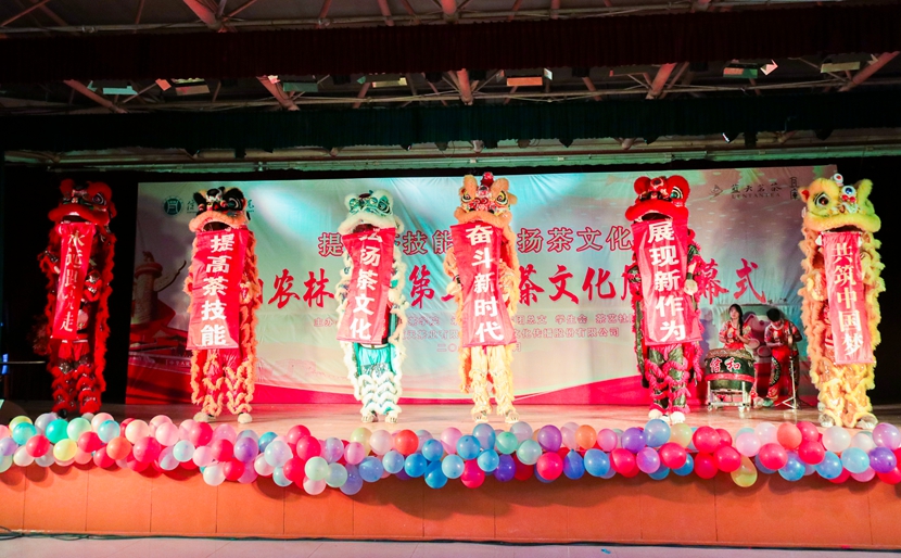 开幕式以茶为主题,以茶艺展示、歌舞、相声、朗诵、T台秀等多种表演形式,全方面表现茶文化丰富的内涵,充分展现了信农学子的风采以及传承茶文化的信心。活动在热情磅礴的鼓舞《双面燕洵》中拉开了序幕;女子茶艺队带来的《故梦》安静娴雅、赏心悦目;男子茶艺队带来的《茶香古韵》刚柔相济,展现了深厚的饮茶氛围;舞蹈《请茶》以歌舞形式生动展现潮汕茶文化,演员舞姿轻盈灵动,乐曲欢快俏皮。