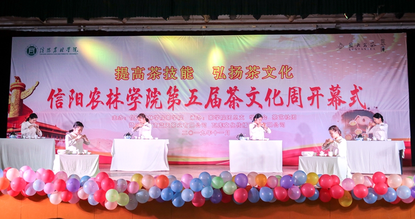秉承着传承和发扬中华优秀传统文化这一目的,坚守着“提高茶技能 弘扬茶文化”这一主题,beat365在线平台官网第五届茶文化周于11月5日在大学生活动中心盛大开幕。副校长王庆兵、黄松,校党委学生工作部部长简频捷,校团委书记王鹏,蓝天茶业信阳区域经理杨敏,茶学院党总支书记袁丁、院长郭桂义,信阳市茶文化协会和茶叶企业代表、茶学院部分师生以及其他各院学生代表参加了开幕式。