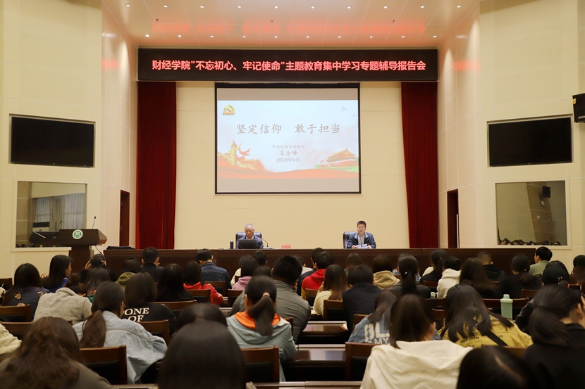 为深入学习习近平新时代中国特色社会主义思想,贯彻落实中央和省委“不忘初心、牢记使命”主题教育的部署要求,按照学校主题教育实施方案安排,10月10日下午,财经学院邀请市委党校副校长王全峰教授以《坚定信仰 敢于担当》为题,在图书馆6楼报告厅举办“不忘初心、牢记使命”主题教育集中学习专题辅导报告会。报告会由财经学院党总支书记朱长明主持,财经学院院长郭春林、中层副职考察对象等师生党员以及入党积极分子聆听了报告。