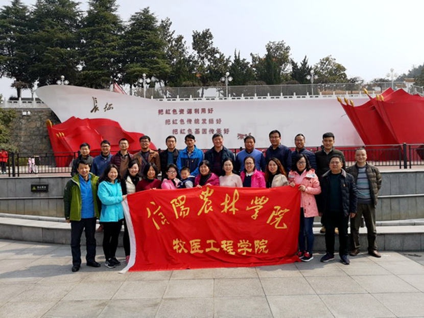 3月9日,牧医工程学院动物医学教工党支部全体党员到新县鄂豫皖苏区首府开展“不忘初心,牢记使命”主题党日教育实践活动。