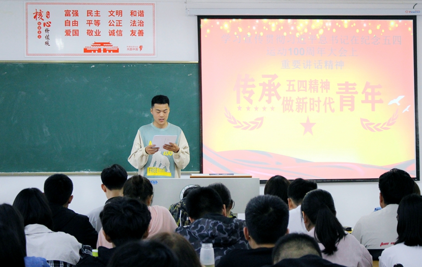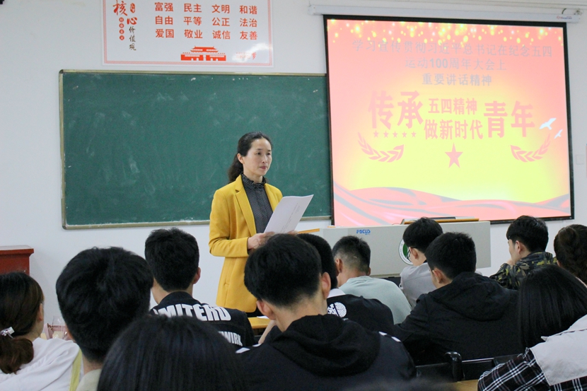 为深入学习宣传贯彻习近平总书记在纪念五四运动100周年大会上的讲话精神,按照团中央、团省委、校党委《关于认真学习贯彻习近平总书记在纪念五四运动100周年大会上讲话精神的通知》的要求,5月15日下午,校团委组织团委全体教师、学生会各部门及各学院主席团干部代表在第二教学楼117教室召开专题学习会,会议由校团委组宣部部长孙莉琴老师主持。