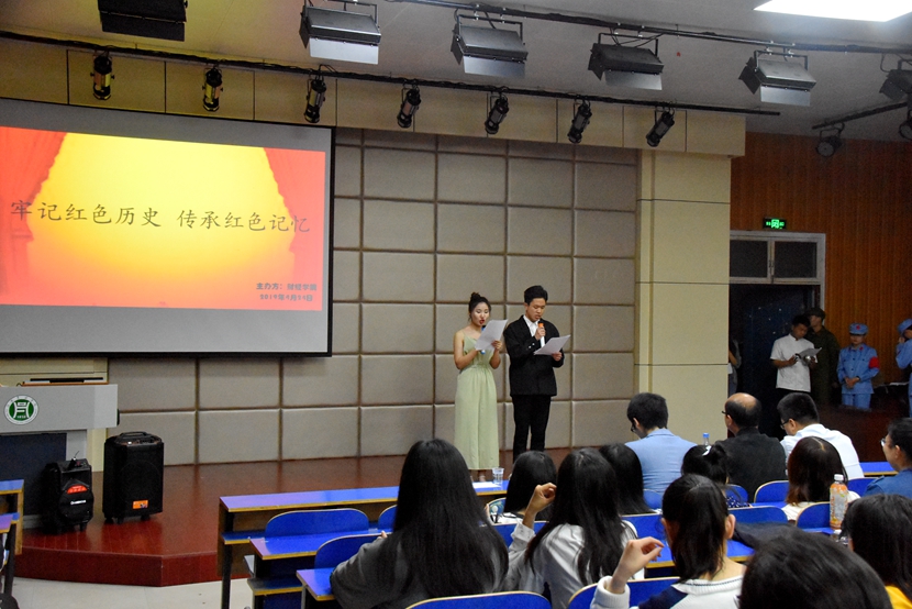 为迎接新中国成立70周年,铭记中国共产党筚路蓝缕的浴血奋斗历史,4月24日,财经学院在第一教学楼E101教室举办了以“牢记红色历史,传承红色记忆”为主题的历史情景剧大赛。本次大赛共五支队伍参赛,财经学院吕一品老师、段远飞老师、肖家翔老师、曾毅老师担任此次比赛的评委。