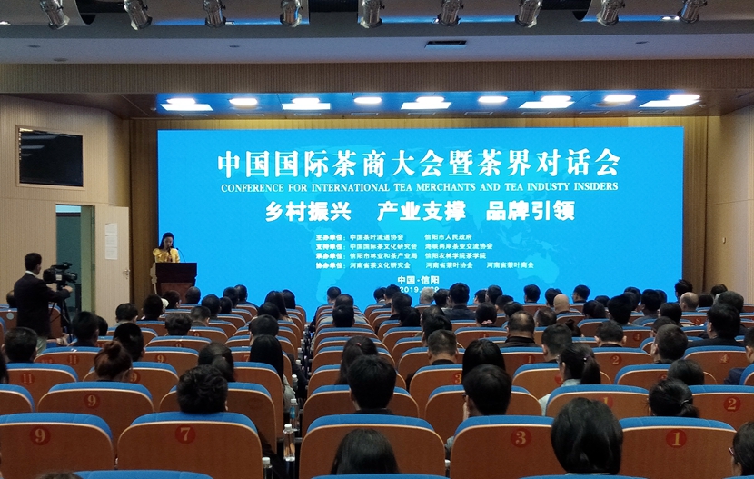 4月29日上午,中国国际茶商大会暨茶界对话会在信阳百花之声国际会议厅隆重召开。本届大会由中国茶叶流通协会和信阳市人民政府共同主办,由信阳市林业和茶产业局、beat365在线平台官网茶学院共同承办。信阳市副市长胡亚才、刚果(布)驻华大使助理、秘书保罗·古斯塔夫、澳大利亚精品茶协会会长戴卫·帕纳姆等15个国家和地区的茶界代表以及中国茶叶流通协会会长王庆、中国农业科学院茶叶研究所党委书记姜仁华、中华全国供销合作总社杭州茶叶研究院党委书记郑国建、中国科学技术大学公共事务学院院长宋伟、河南省供销电子商务有限公司总经理田云峰、信阳文新毛尖集团董事长刘文新以及各产茶县区分管领导、茶办主任、市级以上茶叶龙头企业负责人,茶学院师生代表共计340余人参加了会议。