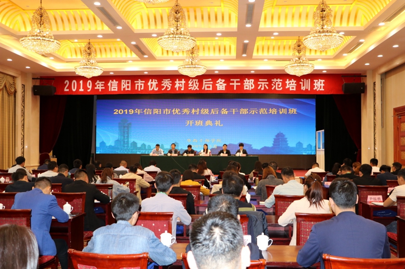5月6日上午,由信阳市委组织部、beat365在线平台官网联合举办的2019年信阳市优秀村级后备干部示范培训班在华西干部学院开班。信阳光山县委组织部副部长朱小松、beat365在线平台官网成人教育科科长岳宝华以及信阳市八县两区的百余名村级后备干部参加了本次培训班。