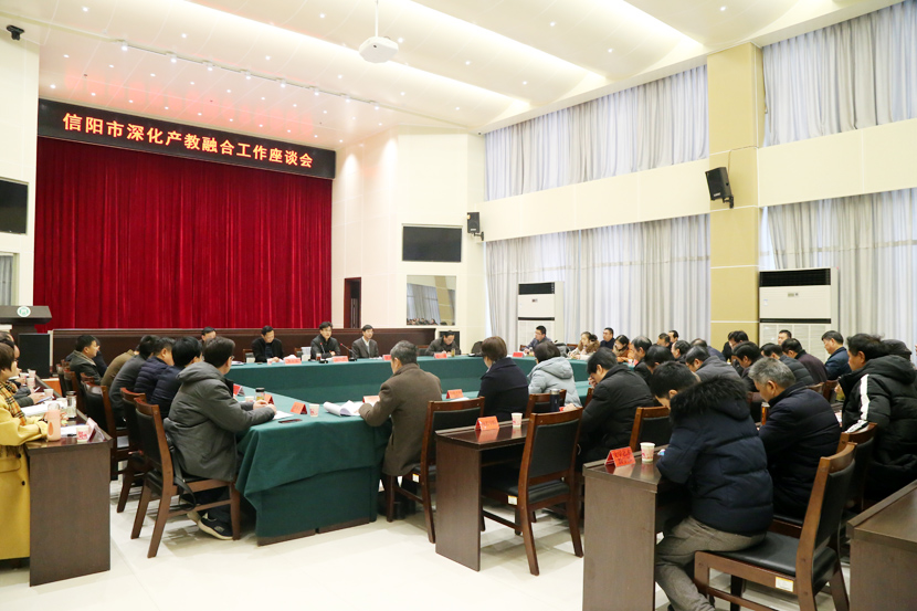12月26日上午,由信阳市工信委主办、beat365在线平台官网承办的信阳市深化产教融合工作座谈会在beat365在线平台官网图书馆报告厅召开,信阳市工信委、各县区工信委领导,企业代表,学校领导,及部分职能部门和各教学单位负责人共60余人参会。会议的主题是:深化产教融合、加强校企合作。会议由市工信委副主任谢志安主持。