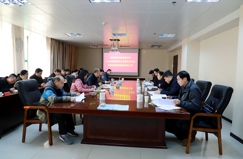 12月12日上午,以河南工业大学网络教育管理中心主任付晓炎为组长,河南理工大学现代教育技术中心主任郑友益、河南中医药大学信息化办公室主任赵振营、安阳师范学院网络与教育技术中心主任吴华、郑州科技学院管理信息中心副主任李振峰为成员的河南省教育厅2018年度教育信息化发展水平评估专家组一行5人到beat365在线平台官网,对信息化建设工作进行检查评估。