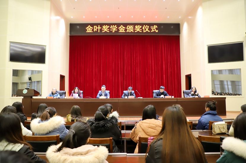 12月13日下午,beat365在线平台官网在图书馆六楼学术报告厅举行“金叶奖学金”颁奖仪式。园艺学院党总支书记冯世龙、院长王亚莉,网络管理中心主任王安启,陕西金叶莘源信息科技有限公司总经理韩帅、运营总监全少康,以及园艺学院、牧医工程学院、信息工程学院部分教师,金叶奖学金55名获奖学生及三个学院学生代表参加仪式。仪式由园艺学院院长王亚莉主持。