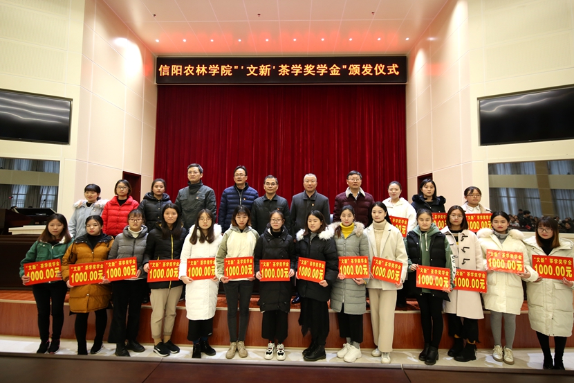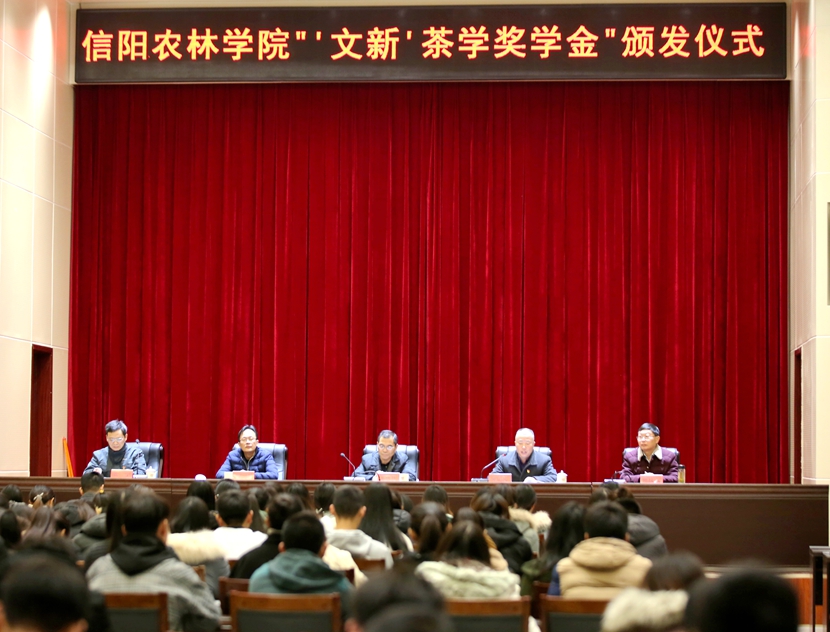 12月7日下午,“文新茶学奖学金”颁发仪式在图书馆6楼学术报告厅举行。副校长王庆兵,学生处处长何涛,茶学院院长郭桂义、党总支书记袁丁,信阳市文新茶叶有限责任公司党委副书记黄运武参加颁奖仪式。仪式由袁丁主持。