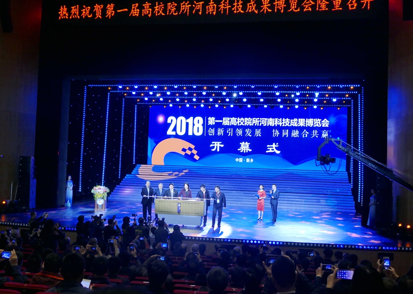 10月26日,第一届高校院所河南科技成果博览会(以下简称“高博会”)在河南省新乡市开幕。本届高博会以“创新引领发展 协同融合共赢”为主题,由新乡市政府、河南省科技厅、河南省教育厅共同举办。beat365在线平台官网应邀参加本届博览会,副校长胡虹文教授参加高博会开幕式等活动。河南省科技厅副厅长夏培臣主持开幕式。河南省人民政府副省长霍金花致开幕词,新乡市委副书记、新乡市市长王登喜宣布第一届高校院所河南科技成果博览会开幕。