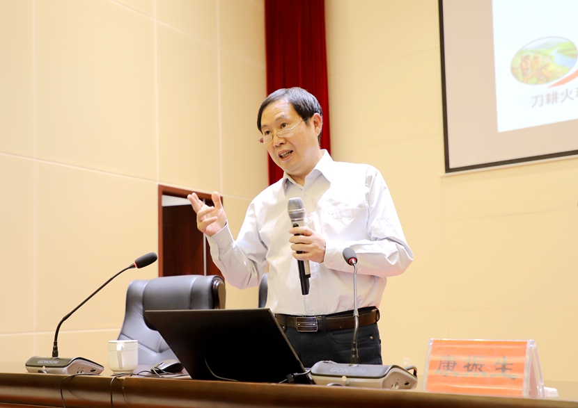 康振生院士以“新形势下作物病虫害的绿色防控”为题向大家介绍了我国新时期农业面临的挑战、绿色防控技术措施,并以小麦条锈病为例,系统地介绍了我国小麦条锈病的防控现状、小麦条锈病菌的有性生殖与绿色防控技术,以及小麦条锈病菌的致病机理与小麦抗性改良等内容。康振生院士结合几代植物病理研究者的科研经历,指出,植保人就应该多下“地”,从“地”中提出问题、解释问题的科学性、最终解决问题。